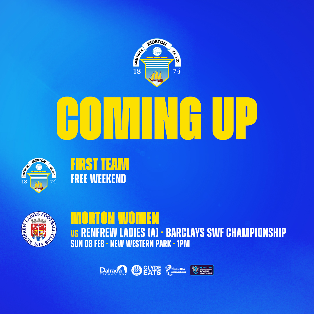 First TeamFree Weekend Morton WomenRenfrew Ladies vs Morton WomenBarclays SWF ChampionshipNew Western ParkSunday 8th February1PM...