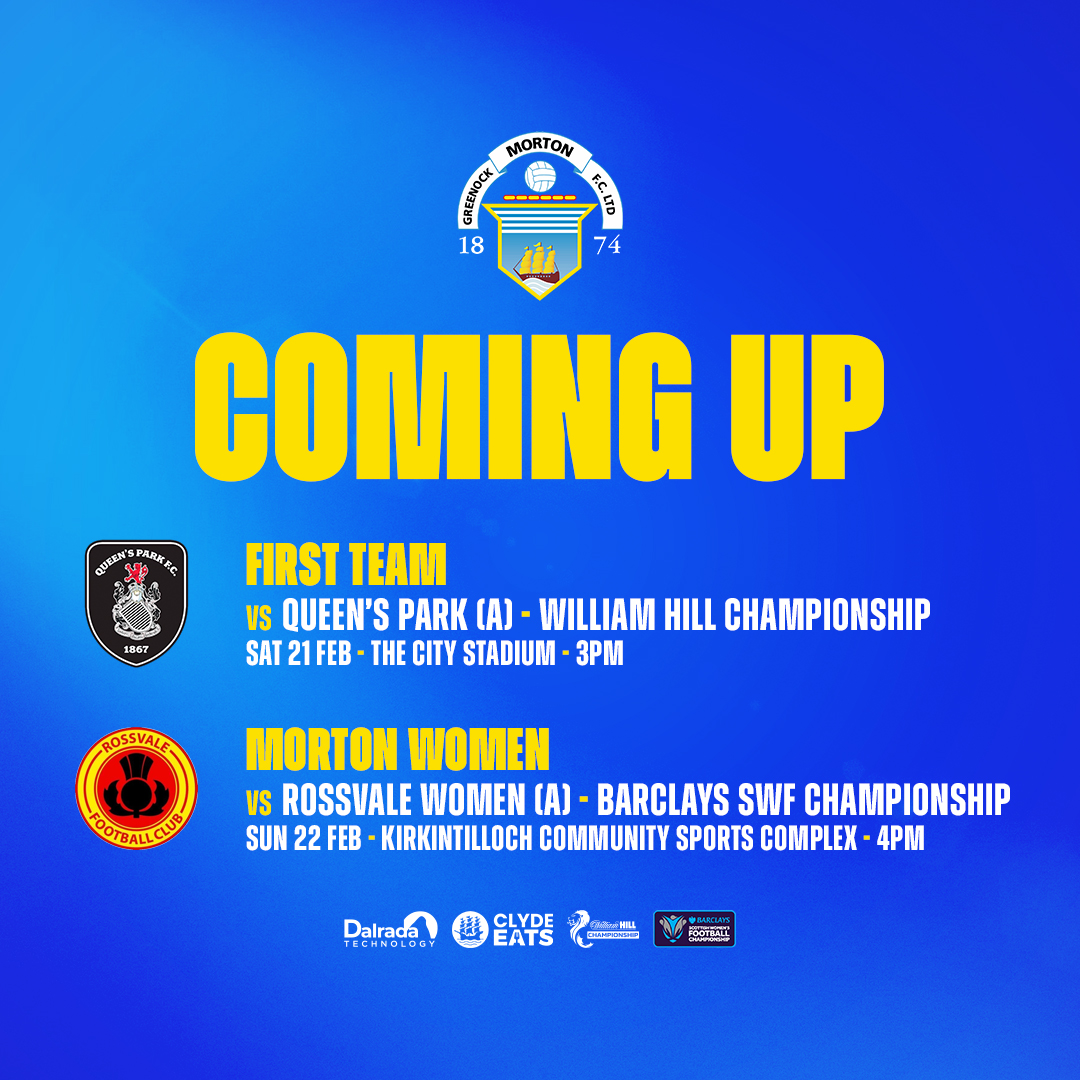 First TeamQueen’s Park vs MortonWilliam Hill ChampionshipThe City StadiumSaturday 21st February3PM Away tickets for this match are sold out. Morton WomenRossvale Women vs Morton...